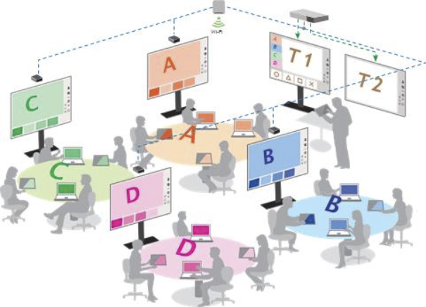 Pensada para universidades, centros de enseñanza superior y salas de conferencias se presenta como una solución dinámica y flexible que permite proponer ideas y trabajar en equipo, mediante el uso compartido e inalámbrico del contenido desde el portátil o tableta.