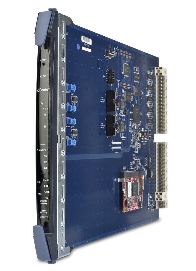 Compatible con AES67 esta tarjeta de interfaz permite transportar hasta 64 canales de audio de alta calidad a varios dispositivos habilitados para Dante a través de una infraestructura de red Ethernet estándar.