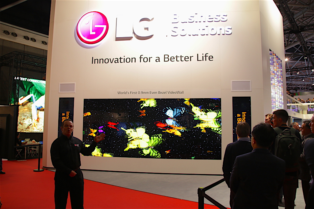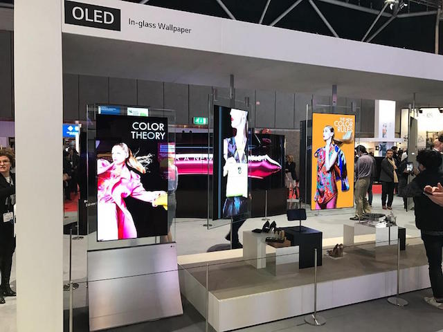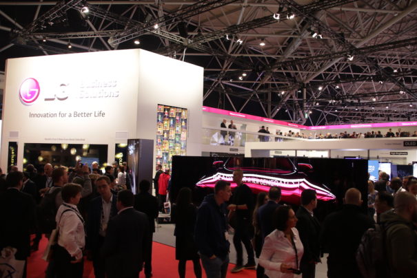 En la feria, LG ha reafirmado su compromiso para romper las barreras de la innovación en calidad de imagen con sus nuevas soluciones profesionales de digital signage con tecnología Oled, como la pantalla Oled flexible, denominado OLED WallPaper de cristal y el modelo LCD Ultra Stretch, para ofrecer . una experiencia visual diferencial que se adapta a cualquier tipo de estructura para su uso como soporte publicitario, en entornos educativos, hospitality, retail, etc.