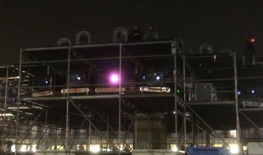 Para conjugar este espectáculo de luz y sonido, en la estructura central de la plaza se dispusieron 40 focos Clay Paky Mythos y se ha utilizado una mesa de control Grand MA2 para gestionarlo.