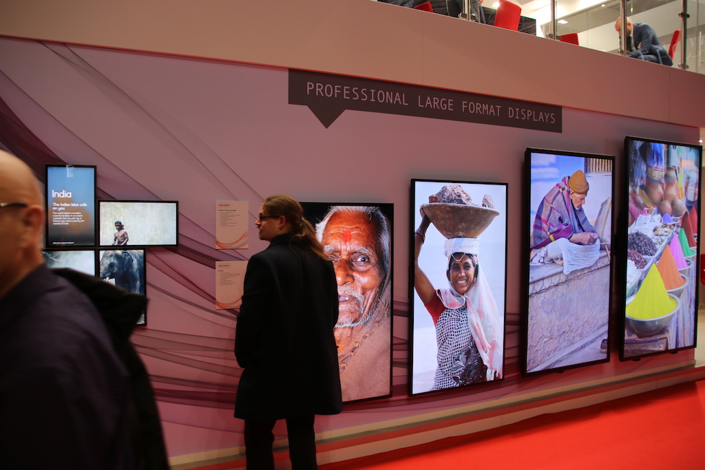 Sharp también lanzó su primera pantalla táctil interactiva Big Pad de 40 pulgadas, PN-40TC1, para las reuniones pequeñas y aplicaciones de cartelería interactiva. En cartelería digital, exhibió la nueva gama de pantallas de gran tamaño PN-Q, pensada para salas de reuniones y otras aplicaciones de cartelería comercial. Está disponible en formatos de 60 a 90 pulgadas.