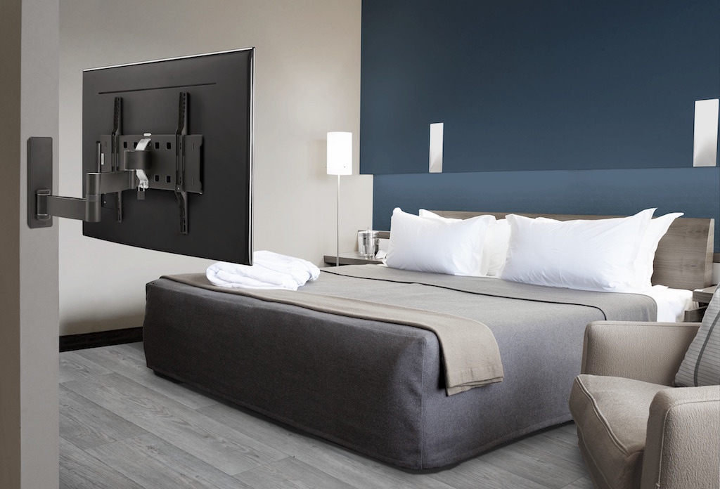Con el objetivo de ofrecer los mejores servicios a los huéspedes en los hoteles, la compañía ha desarrollado estéticos y funcionales soportes para la mayoría de pantallas y tv hotel instaladas en estos establecimientos para una visualización desde todos los ángulos y grados de inclinación.