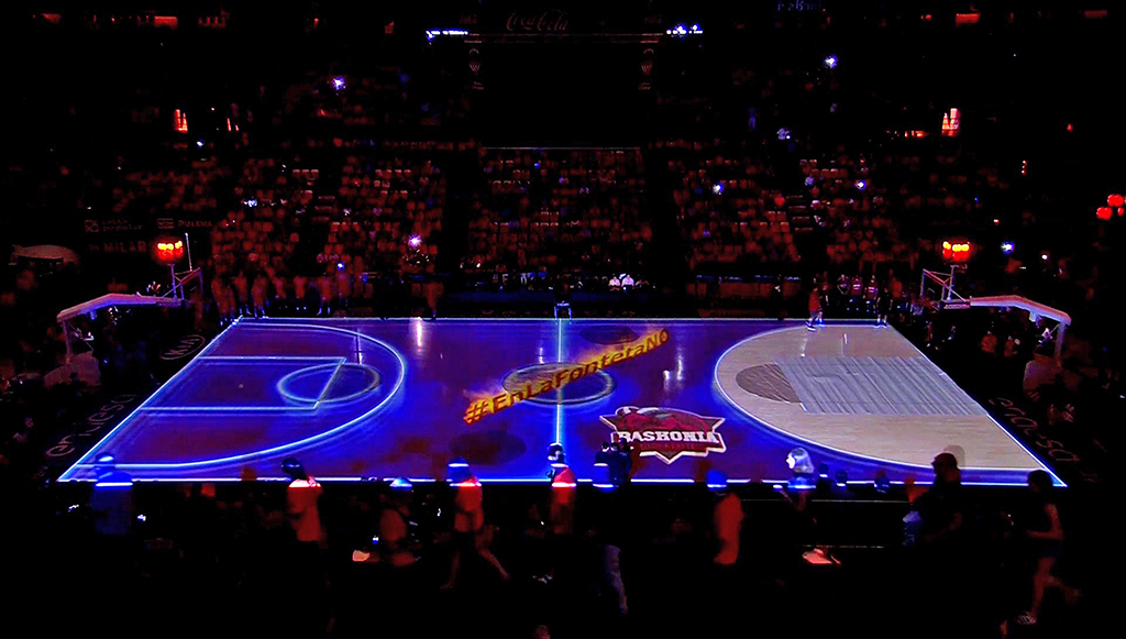 El experto en videomapping Chema Siscar acaba de realizar el primer mapping en la comunidad Valenciana sobre una pista de baloncesto. El proyecto se ha realizado en el pabellón de La Fonteta durante la previa del tercer partido de las semifinales de la Liga Endesa, entre Valencia Basket y Baskonia. Para su ejecución se han utilizado dos proyectores Christie Boxer 2K30, operados por Pascual Rodrigo, director técnico de la empresa valenciana Audiovisuales.tv.