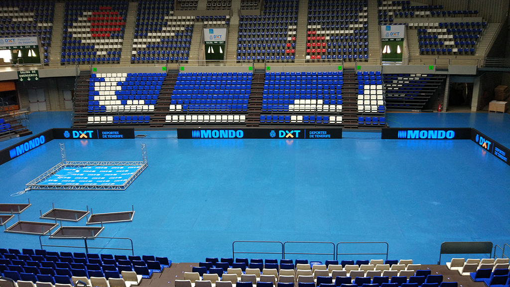 El nuevo banner perimetral completa la apuesta de los responsables Ideco (Gestión Insular para el Deporte, la Cultura y el Ocio) para equipar al pabellón Santiago Martín con la última tecnología Led. En noviembre del año pasado, Mondo instaló dos pantallas led de 12,5 metros cuadrados de alta resolución P6 y, próximamente, se colocará en el centro de la cancha un gran cubo de cuatro caras equipado con pantallas Led. El cubo contará además con un sistema de motorización que permitirá subirlo y bajarlo en función de las necesidades de los responsables del pabellón, ya sean para un partido o un espectáculo.