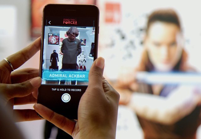 En un radio de 2 Km. de las veinte localizaciones más emblemáticas del mundo, los fans de Stars Wars sólo tendrán que abrir esta noche la aplicación del mismo nombre, seleccionar Find the Force y apuntar con su teléfono al cielo para ver una breve escena de la película en realidad aumentada.