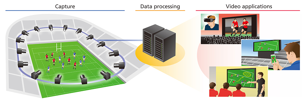 La plataforma se compone de un montaje de varias cámaras de alta resolución alrededor del estadio, conectadas a una red y controladas mediante software para grabar simultáneamente la competición desde múltiples puntos de vista. Posteriormente, la tecnología de procesamiento de la imagen produce vídeos en forma de datos en 3D.