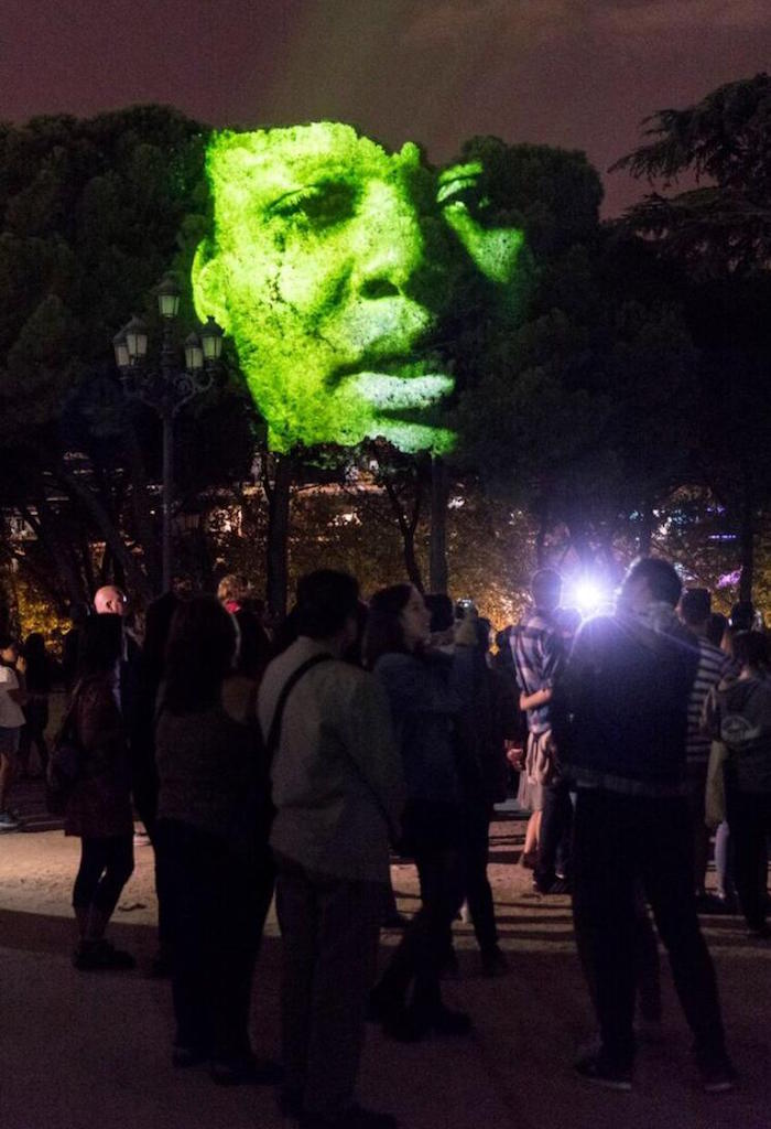 Los jardines de Sabatini de Madrid han sido el escenario escogido por la ONG Acción contra el Hambre, para realizar esta impactante y sensibilizadora proyección con motivo del Día Mundial de la Alimentación, realizada por Otucinema, Romera y Diseño, La Bocina y Fluge.