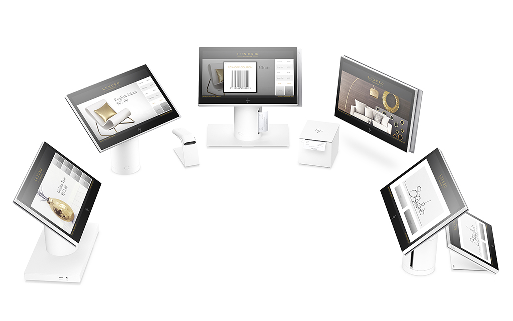 Los nuevos HP ElitePOS modernizan la experiencia de compra en los establecimientos comerciales con una solución que puede personalizarse con una impresora en columna, una plataforma de conectividad para tiendas, un escáner de código de barras o un lector de banda magnética y pantallas de cara a los clientes.