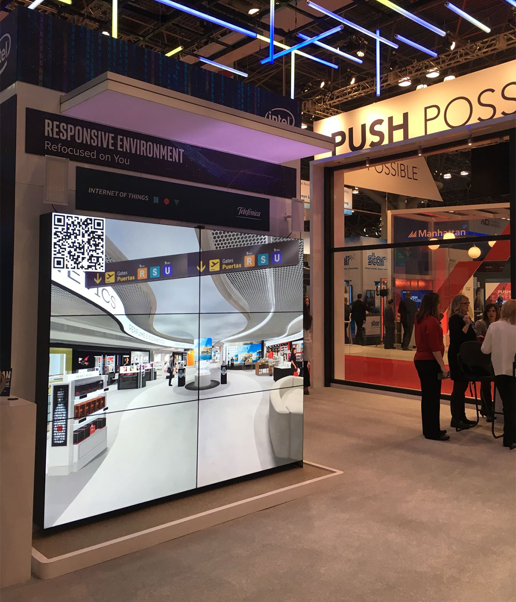 Telefonica IoT NRF 2018‘Ópera visual’ es el momento en que una serie de contenidos se sincronizan y se muestran en todos los recursos digitales de la tienda. Implica además la integración de anuncios de distintas marcas, música e iluminación para centrarse en una sola marca o campaña durante unos minutos adaptada a los clientes.