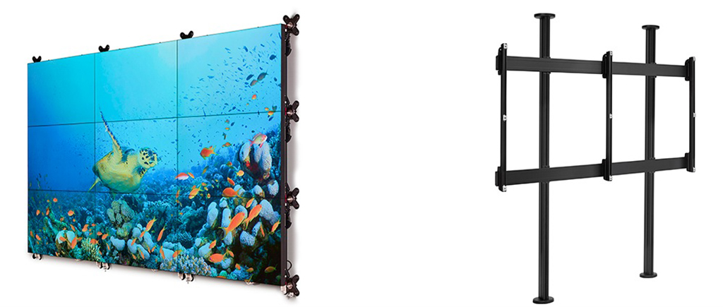 Las estructuras de montaje de Vogel están disponibles en versiones para realizar instalaciones del suelo al techo, fijo al suelo, de suelo, de montura libre, para montar colgadas del techo, de techo a pared y de suelos a pared. Esto proporciona una gran flexibilidad para colocar el video wall LCD exactamente donde se necesita.