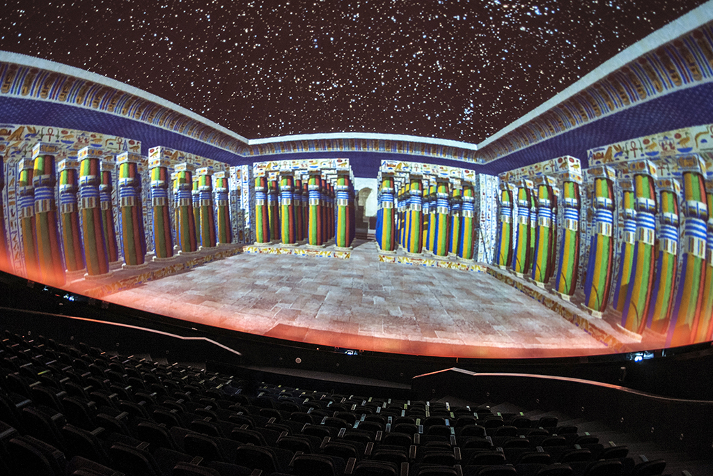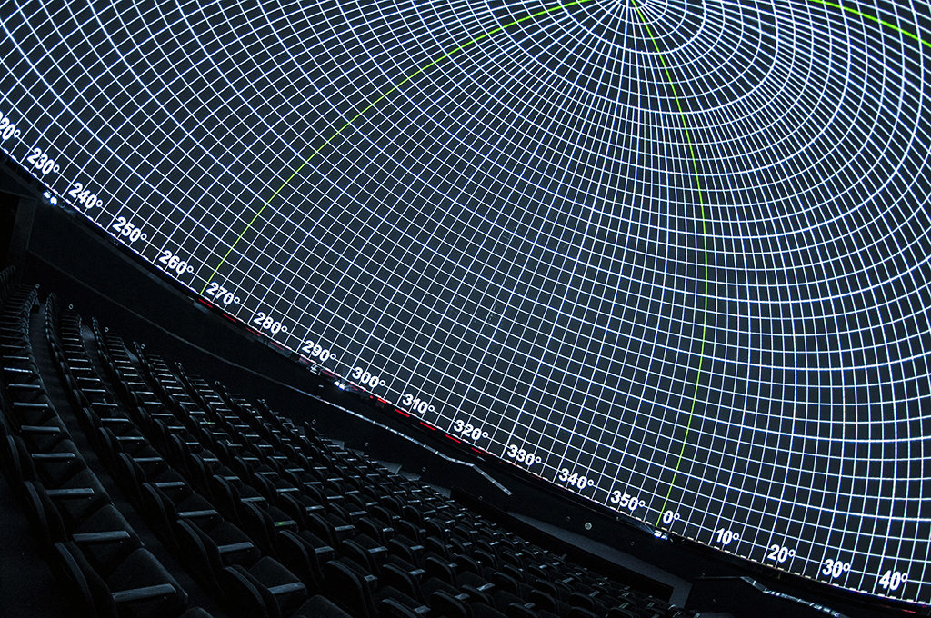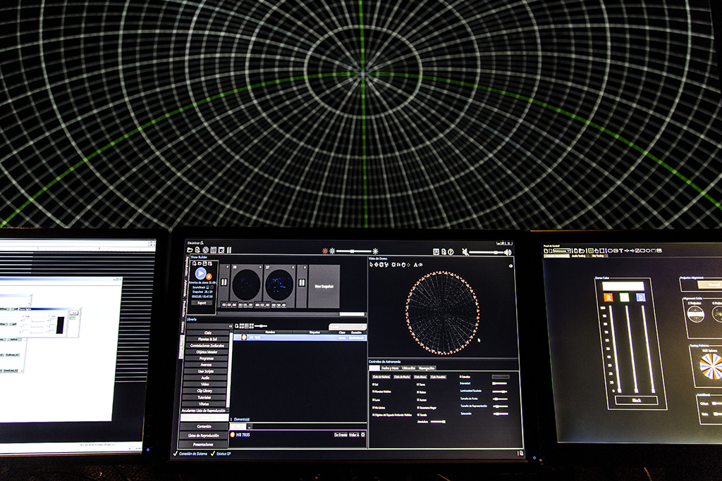 Seis proyectores cubren el anillo circundante y dos más se ocupan de la cobertura del cenit. El domo tiene una capacidad para 269 personas sentadas y seis más en sillas de ruedas.