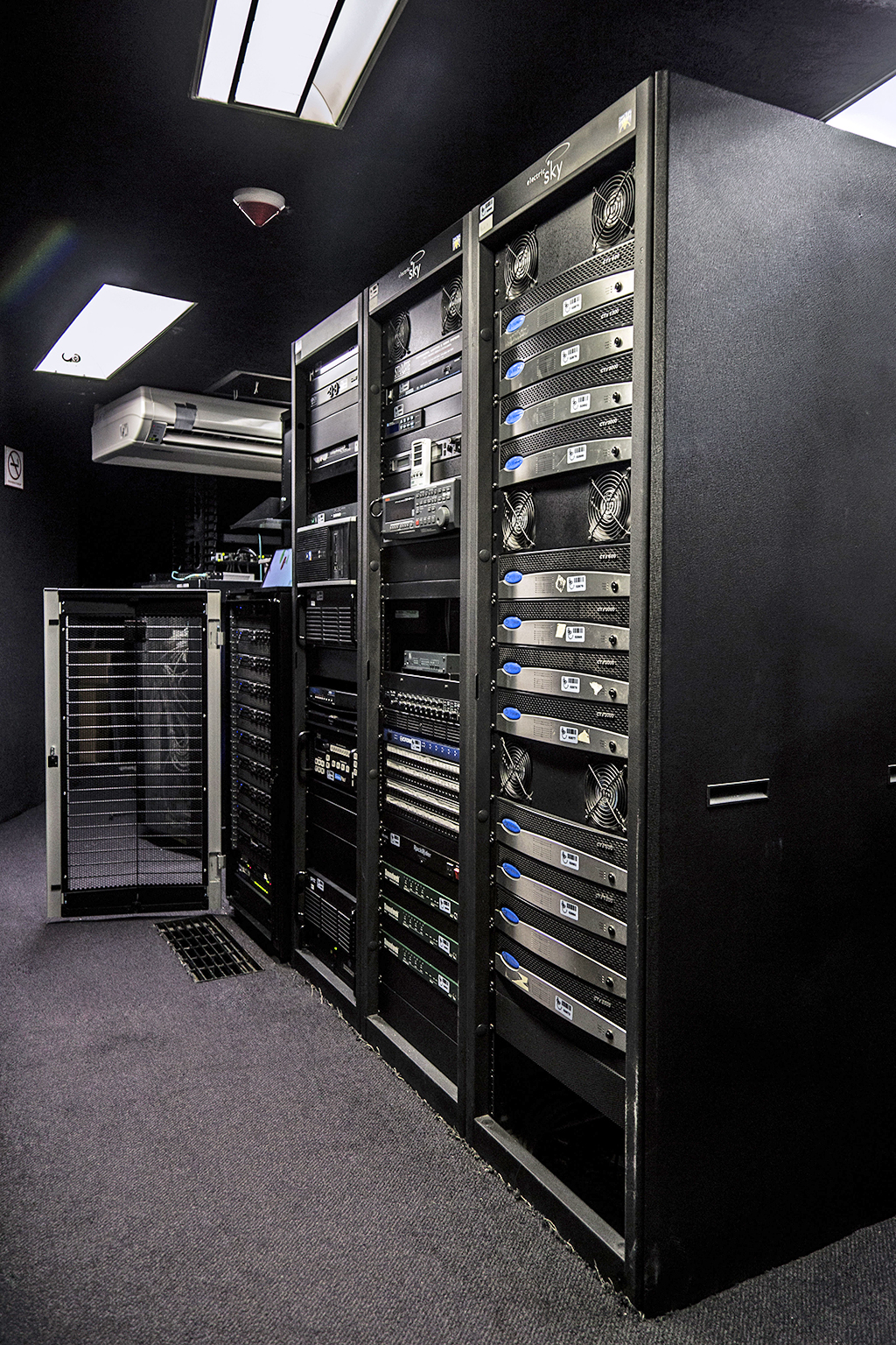 Los proyectores están conectados uno a uno mediante un anillo de conexiones digitales ópticas HD-SDI y a través de interfaces se envía la señal de vídeo, que se mantiene estable, libre de cualquier degradación.