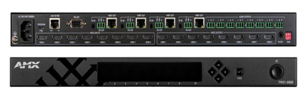 Las nuevas soluciones de distribución de vídeo de AMX son la matriz Precis 8×8, el controlador AMX DCE-1, el escalador SCL-1 y el transmisor DXLite.