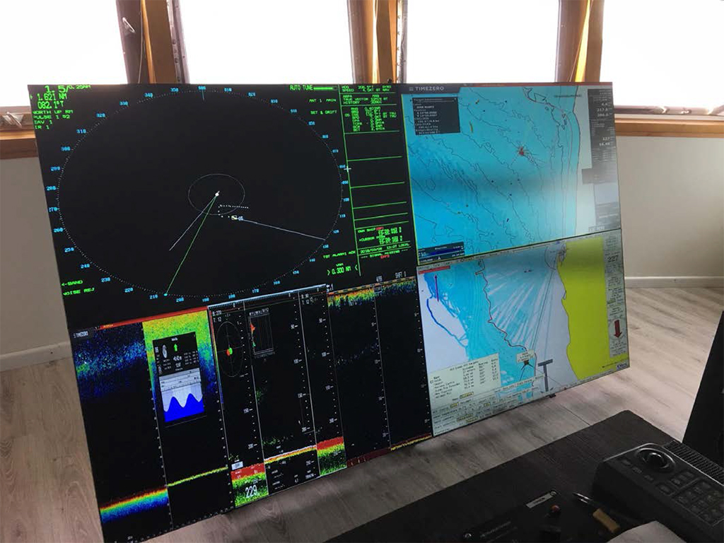 Una antigua sala de radio junto al puente se convirtió en una sala de equipos, lo que permitió que el trabajo continuara sin interrumpir las operaciones del buque. El sistema de cableado existente fue reemplazado por Cat6, con las salidas DVI del radar del barco, el receptor de TV off-air y la ecosonda fue enrutada a través de un switch DVI al procesador principal Mauell.