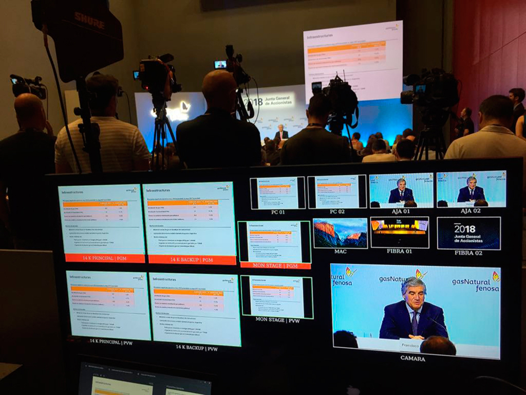 Sono Tecnología Audiovisual se hizo cargo de la cobertura audiovisual de la Junta General de Accionistas de Gas Natural Fenosa, que ha cambiado su denominación por Naturgy, en un evento que congregó a más de 1.200 personas en IFEMA. En total se dio servicio técnico y se proporcionaron los equipos y sistemas necesarios para su realización en la sala principal y en siete espacios complementarios más.