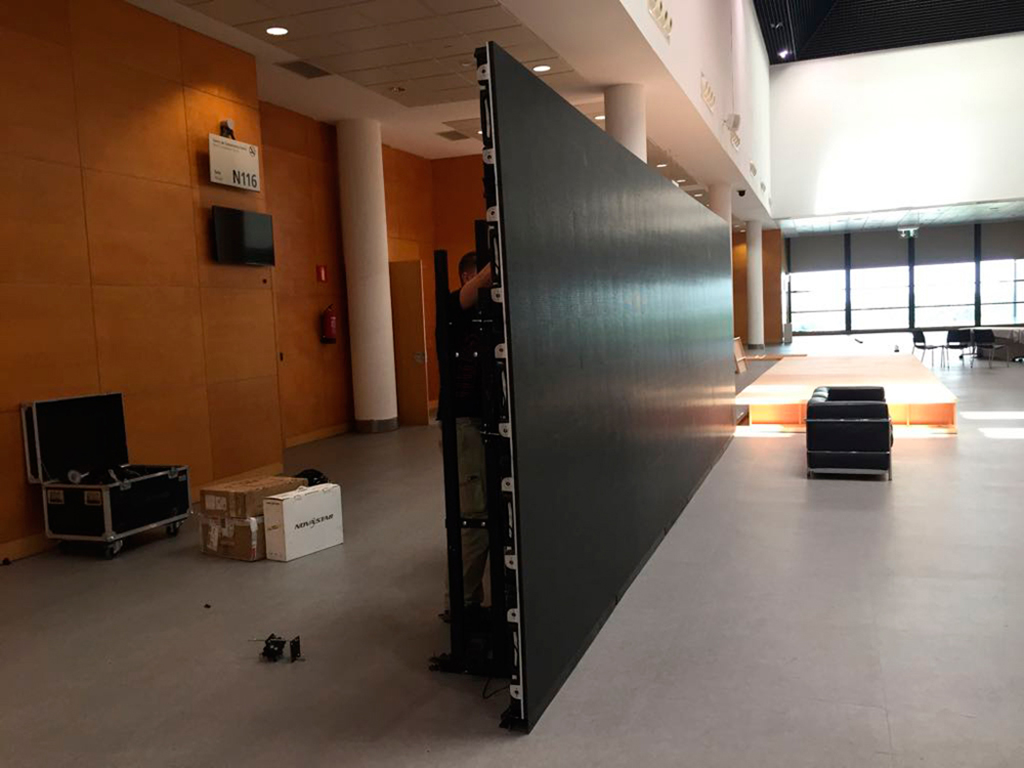 Sono también se encargó de proporcionar una pantalla con soporte de suelo de 95 pulgadas y audio perimetral para la sala Consejo; dos Led Absen A3 de 3,9 mm de píxel pitch sobre tarima para la sala Neptuno y Colón: un monitor de 80 pulgadas con soporte de pie para la sala Expertos, ubicada tras la zona del escenario; y una Led con forma de tótem de 2,5×6,5 metros y una resolución de 3,9 mm de píxel pitch en el Hall de entrada. Esta se reforzaba con una gran pantalla Led de 8×2,5 metros y 3,9 mm. Toda esta infraestructura de visualización fue gestionada con un sistema de player Watchout.
