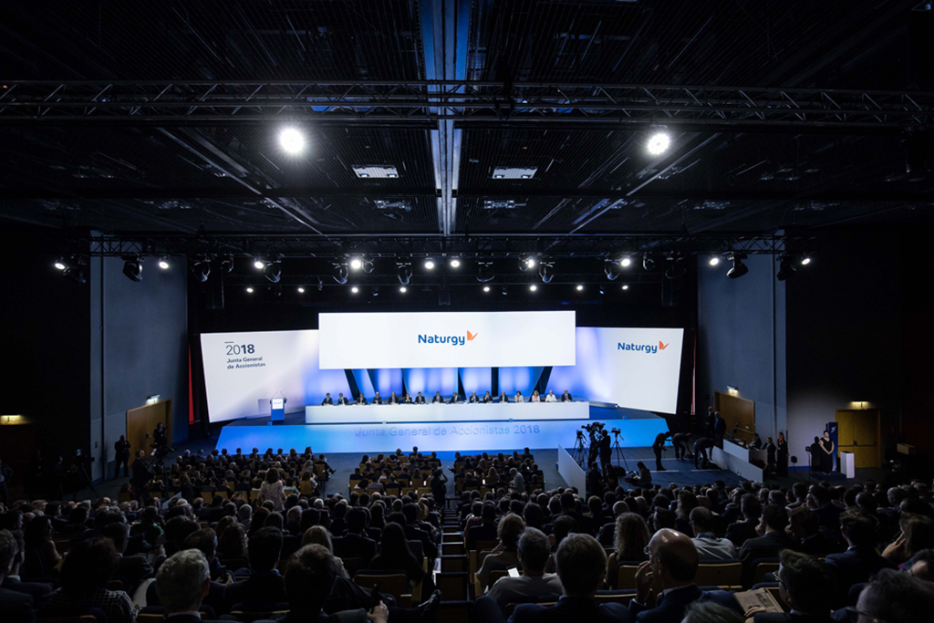 La empresa aprovechó el encuentro con sus accionistas para reforzar, a través de una completa infraestructura AV proporcionada por Sono, el reciente cambio en su imagen de marca que ahora se denomina Naturgy.