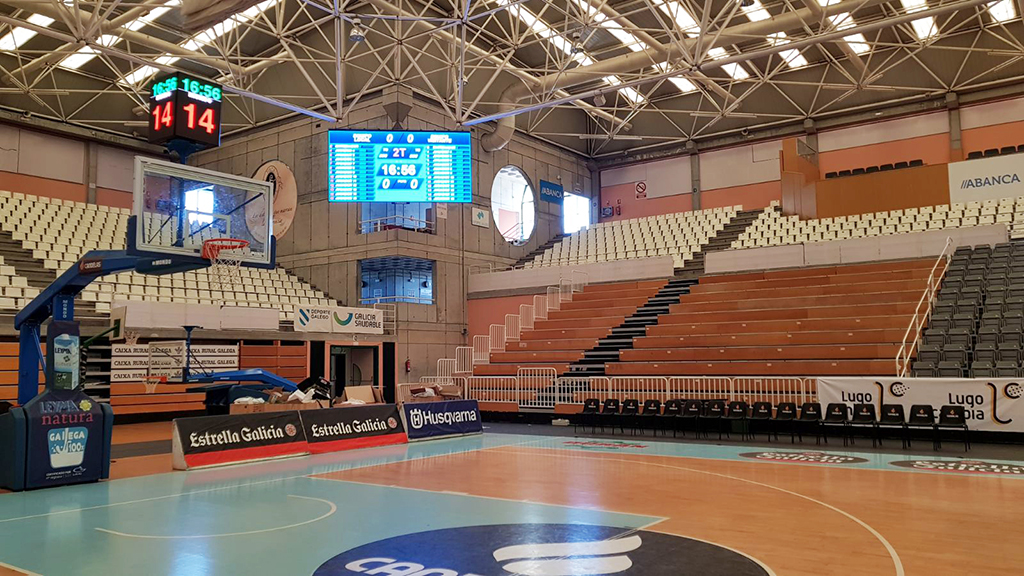 En el Pazo dos Deportes de Lugo se han instalado pantallas Led indoor de Mondo de 12,5 metros cuadrados cada una, que ejercen como marcador deportivo y canal de comunicación y marketing. También cuenta con canastas MondoAthens y marcadores de posesión de cuatro caras.