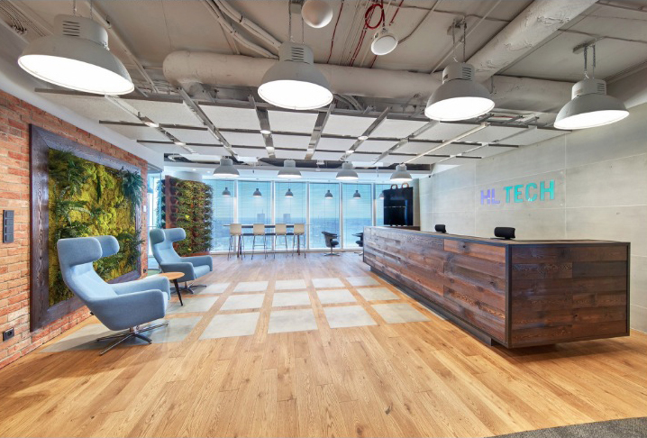 La oficina de HL Tech es única en muchos aspecto. Logra el equilibrio entre la creación de espacios abiertos a la vez que conserva la funcionalidad necesaria para un lugar de trabajo.