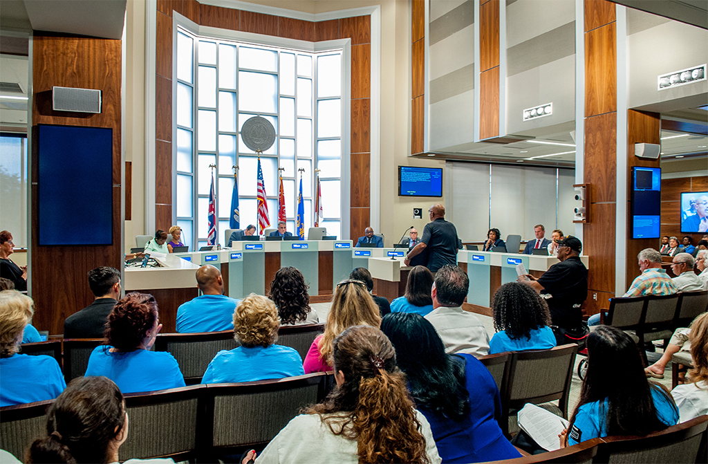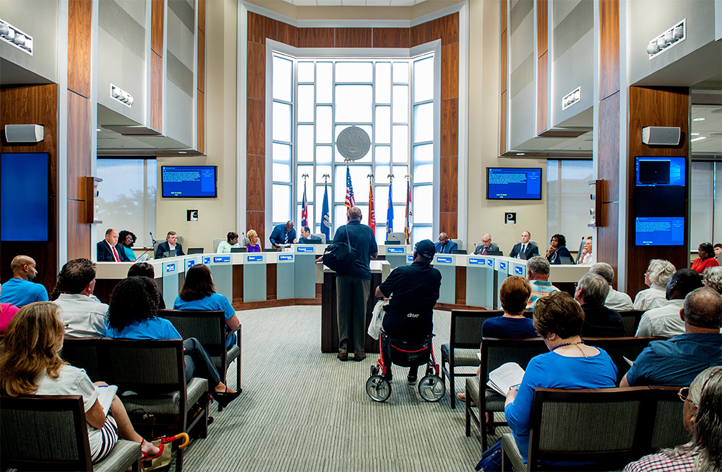 Cuando el Baton Rouge Metro Council decidió renovar sus cámaras, proyecto que llevo a cabo la firma Grace Hebert Architects, decidió buscar una solución de visualización que diera un toque diferencial a la zona en la que se sientan los miembros de la junta directiva.