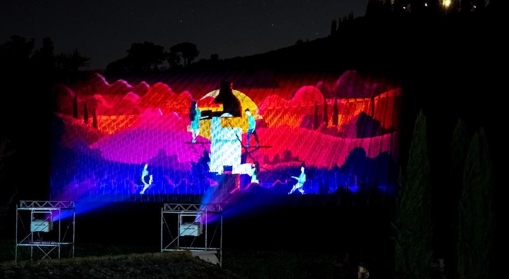 “Es un poema escrito con luz, tendido entre la tierra y el cielo sobre el telón de fondo de la colina de Villa Cerna. Un espectáculo único para aquellos que caminan por la carretera de Chiantigiana, que va de Monteriggioni a Castellina en Chianti”, explican sus responsables, que cuentan con Epson, en concreto con la filial italiana, como partner tecnológico y con el especialista local en proyecciones inmersivas Zebra Mapping.