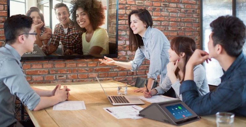 Zoom Rooms está pensado para potenciar las capacidades de trabajo en equipo gracias a su uso en pantallas táctiles colaborativas, lo que permite compartir pantallas, pizarras y anotación de varios usuarios.