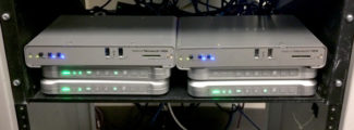 Los otros dos dispositivos Monarch HDX están montados en un rack fijo en una sala de servidores, junto con un enrutador de vídeo, conectado mediante cable de fibra óptica a tres de los lugares más utilizados en el campus y al estudio de televisión de la universidad.