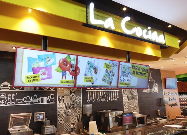 Como parte de esta apuesta comercial, los responsables de la cadena han desplegado una completa solución de comunicación dinámica, en la que se combinan un circuito de monitores de gran formato; dos menu board digitales, cada uno configurado con tres monitores, así como cuatro pantallas Led ubicadas en los escaparates de ambas tiendas.