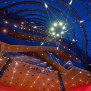 Diseñado por el arquitecto irlandés Kevin Roche, galardonado con el premio Pritzker, el Centro de Convenciones de Dublín (CCD) se ha convertido en un edificio emblemático del skyline de de la ciudad. Su atrio con fachada de vidrio ofrece unas vistas panorámicas del río Liffey, del centro de la urbe y de los montes Wicklow.