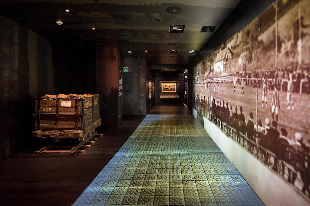 Ubicado en el segundo sótano del estadio, el museo se distribuye en tres ambientes que se diferencian por los colores verde, rojo y negro, respectivamente. El visitante accede a una sala forrada de metal, donde se puede observar un audiovisual en el que se contextualiza el momento de la creación del Athletic, el Bilbao de finales del siglo XIX.