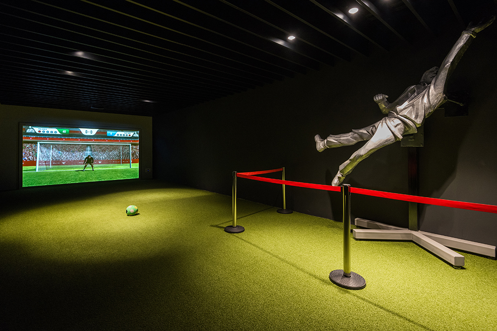 Se trata de una proyección en blending sobre pared y suelo, de 8×2 metros, que crea un entorno inmersivo y para lo que se utilizan seis proyectores Christie Captiva y tres DHD555-GS, este último un equipo 1DLP láser, con una potencia de 5.000 lúmenes y resolución de 1.920×1.080p HD. Otro equipo Captiva se utiliza en el denominado Pasillo del socio para proyectar un logotipo del club sobre una chapa donde figuran los nombres de todos los socios de la historia de la entidad.