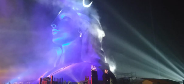 Con una altura de 34 metros, la estatua de Adiyogi se eleva sobre el Isha Yoga Center, sede de la Fundación Isha, en las afueras Coimbatore (Tamil Nadu-India). Cada fin de semana, el cobra vida con una espectacular proyección que narra la historia de la aparición del Adiyogi.
