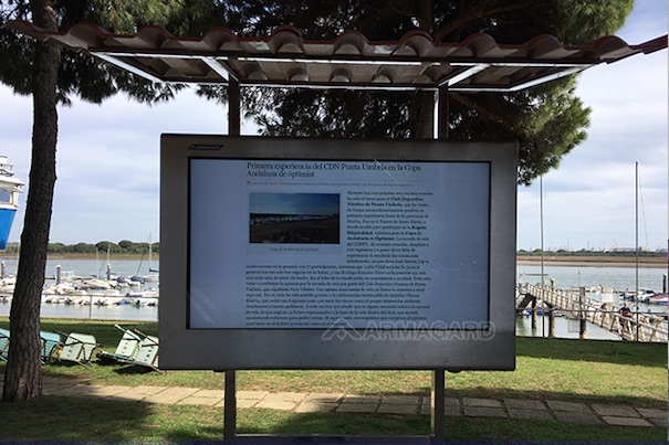 Las soluciones de señalización digital al aire libre del especialista Armagard han llegado a la costa andaluza, en concreto al Club Deportivo Náutico Punta Umbría, en Huelva, cuenta con una pantalla, que cuenta ahora con una pantalla LCD de 47 pulgadas de cartelería digital exterior del fabricante Samsung, dotada con una carcasa protegida IP y Nema para resistir sin problema los vientos y el contenido de sal en el aire de la zona.