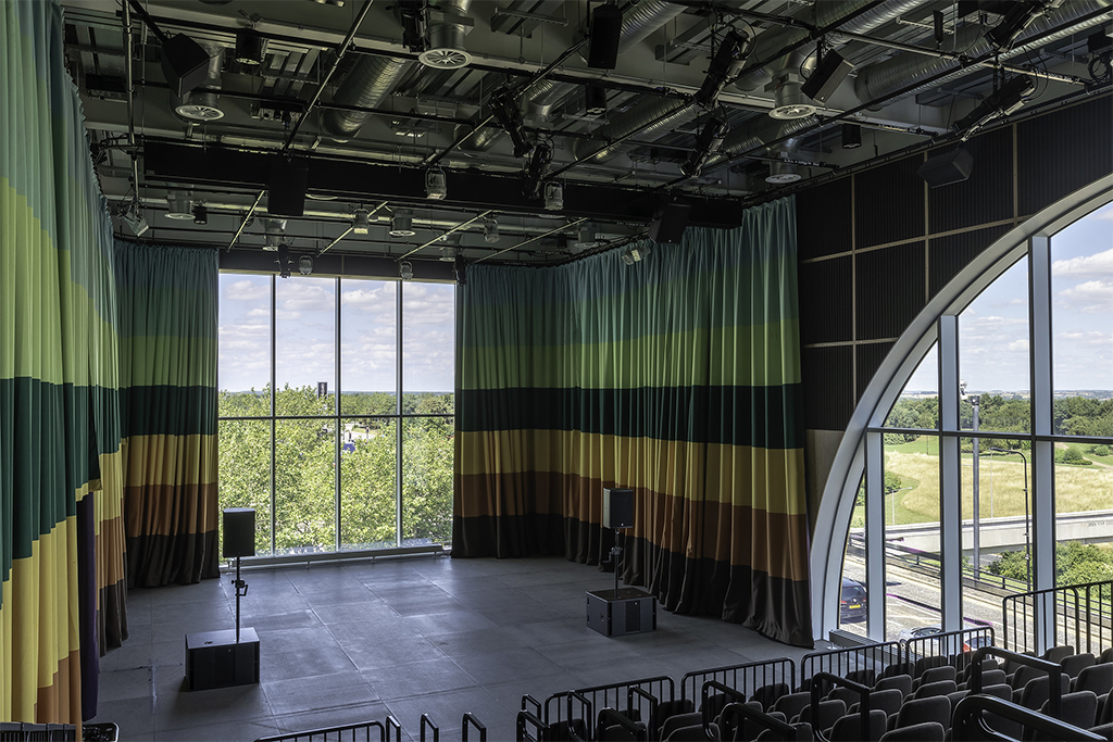 El auditorio, denominado Sky Room, dispone de un sistema de sonido basado en la línea EMS y la gama de instalación i-Series. Todo está conectado en red a través de Dante para una configuración rápida y sencilla.