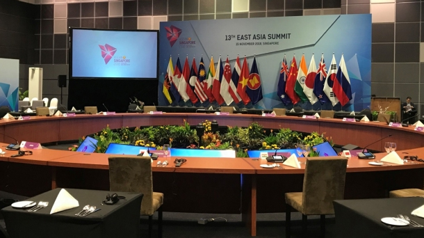 La 33ª Cumbre de la Asociación de Naciones del Sureste Asiático (Asean) reunió en Singapur a los líderes mundiales para hablar de asuntos económicos y políticos de la región. Presidida por el primer ministro del país, Lee Hsien Loong, se  celebró en el Suntec Convention Centre y contó con la presencia de representantes de China, India, Japón, República de Corea, Canadá, Australia, Filipinas y Estados Unidos, entre otros.