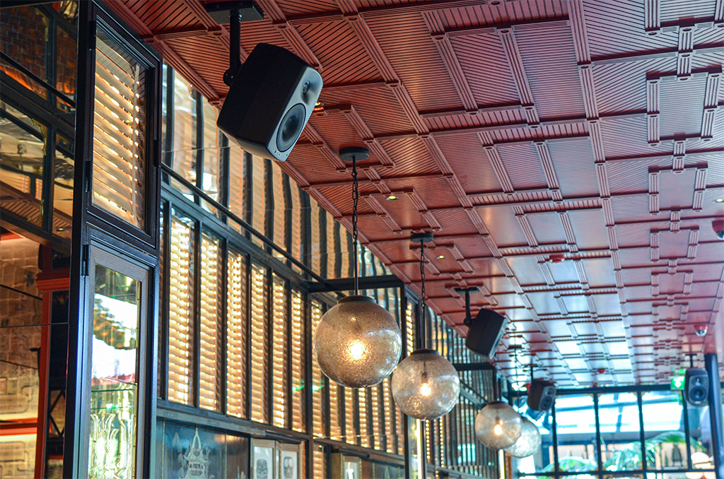 El reto para el área del bar era proporcionar suficiente cobertura para lo que es un espacio muy abierto sin sacrificar calidad por SPL. La solución tenía que ser también discreta y estéticamente tan agradable como fuese posible.