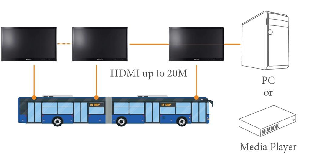 Se aprovechan las extensiones de hasta 20 metros con cables HDMI personalizados que permiten transmisiones de señal de larga distancia sin degradación o cualquier compromiso en la calidad de la imagen o el rendimiento.