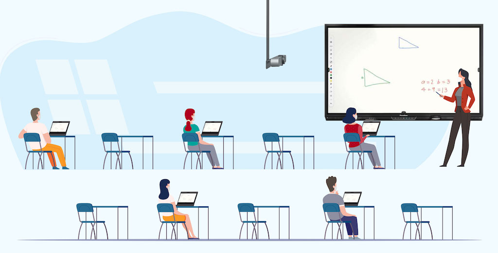 La solución se completa con el OPS integrado, o con un ordenador externo si el centro educativo así lo prefiere, además de una cámara 4K que permite una interacción natural. Todo esto permitirá a los profesores conectarse con los alumnos fuera del centro, a través de la plataforma UC de vídeo colaboración que elijan, sin que la participación de los que no están presentes se vea afectada.