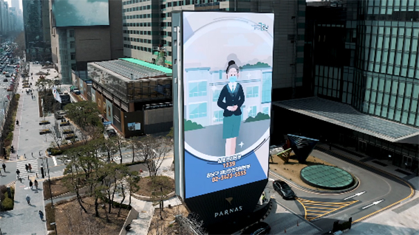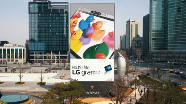 LG ha instalado una espectacular pantalla de señalización Led de alta definición en una de las calles más concurridas de Seúl en Gangnam, en el centro del emblemático distrito de Teherán-ro, que a menudo se conoce como la versión local de Times Square debido a la gran cantidad de pantallas de última generación que muestran anuncios de todas las marcas.