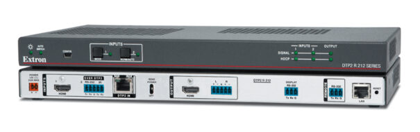 El DTP2 R 212 y el DTP2 R 212 SA son dos receptores conmutadores de nueva generación pertenecientes a la serie DTP2 que ofrecen nuevas características y rendimiento. Ambos modelos disponen de entradas DTP2 diseñadas para funcionar con productos DTP de Extron con el fin de extender señales HDMI, audio y control hasta cien metros a través de un cable blindado CATx.