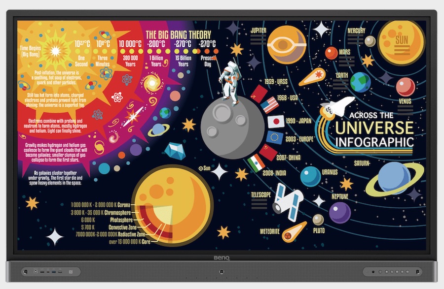 El panel plano interactivo (IFP) RP02 de BenQ está diseñado para crear un entorno de enseñanza y aprendizaje atractivo y saludable, para lo que cuenta con funciones en la nube, incluida la pizarra, que mejoran la participación en la preparación de la clase y fomenta la colaboración más allá de las ubicaciones y las plataformas.