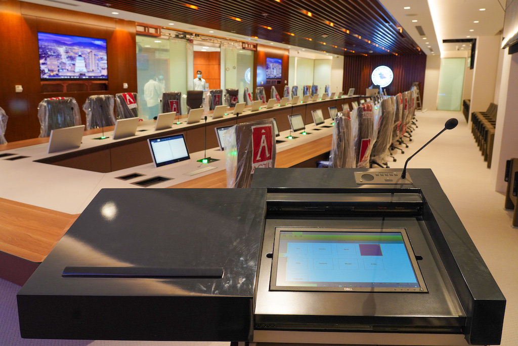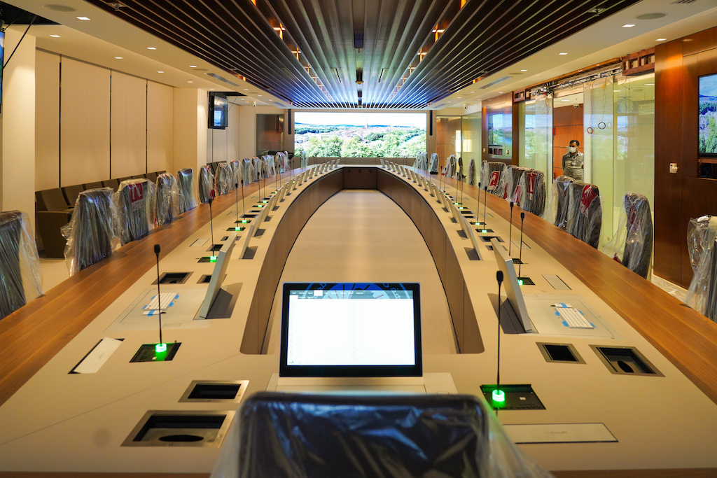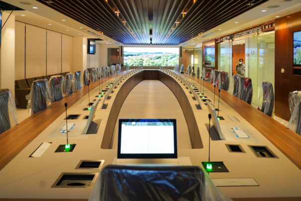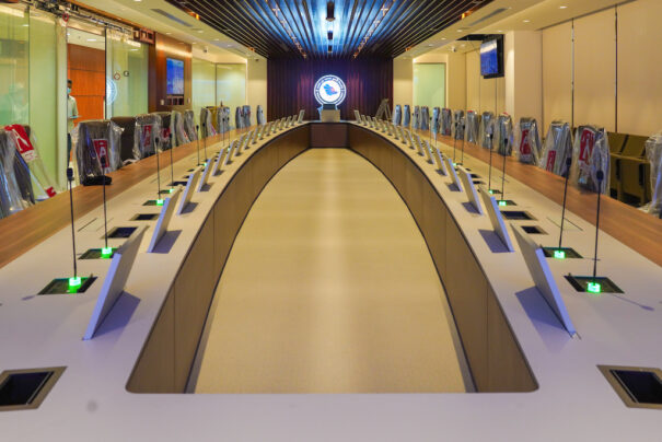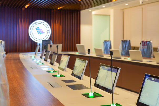 Con sede en esta ciudad de Arabiá Saudí, Enpro ha diseñado la integración audiovisual de esta sala, y concretamente en su gran mesa ovalada de madera, que equipa los exclusivos DB2, Dynamic3, DynamicTalk UnderCover, Courtes y Boxes y DynamicChairDisplay de Arthur Holm, suministrados por Venuetech.