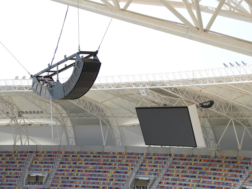 Ocho arreglos de altavoces STS Linea V15i están montados alrededor del estadio, proporcionando cobertura de audio de las gradas. Los altavoces V15i utilizan unidades Quattrocanali 4804 DSP+D para amplificación y para conectarse a la red Dante.