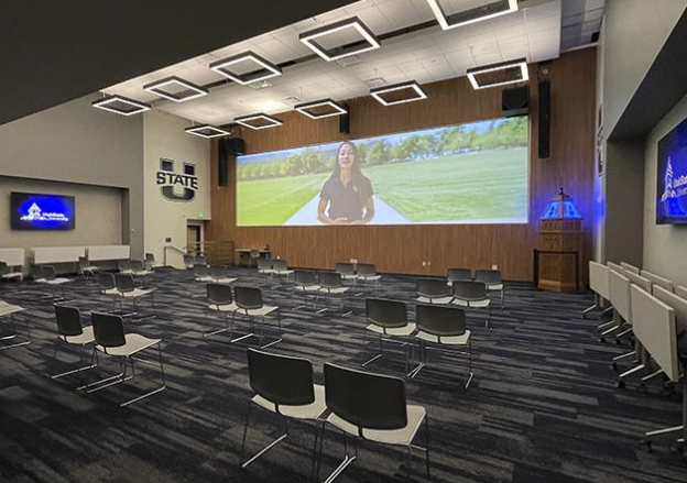 El centro también impresiona con su robusta oferta audiovisual. Jim Wellings, diseñador y programador sénior de sistemas del Departamento de Servicios Académicos e Instruccionales de la USU, trabaja para garantizar que la escuela ofrezca audio y vídeo de alta calidad en el campus y para estudiantes remotos por igual. Y entre los equipos que se han instalado destacan los altavoces Renkus-Heinz.