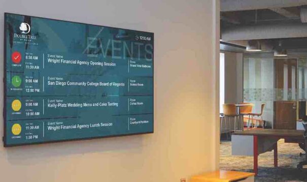 AxisTV Signage Suite también proporciona horarios de conferencias y eventos en tiempo real en Visix Connect y EPS E Ink, los sistemas digitales instalados a la entrada de las aulas y los espacios de reunión.