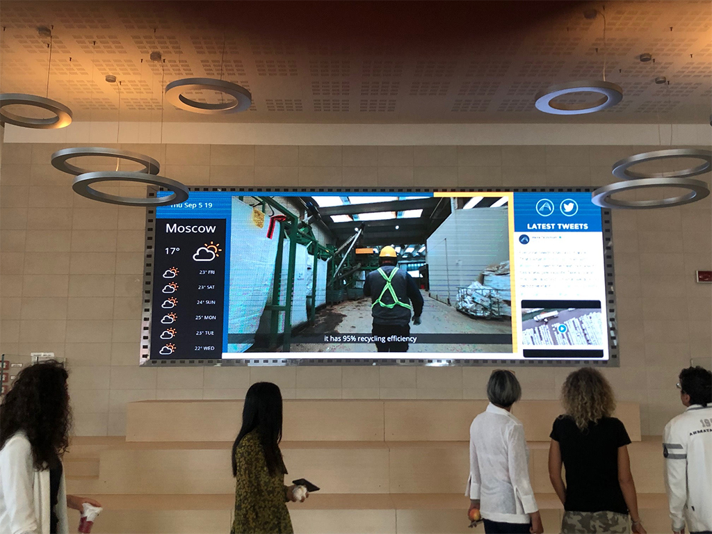 La solución combina imágenes y vídeos tradicionales con información adicional de las redes sociales y la web, que incluye pronostico del tiempo, actualizaciones de noticias y otro contenido relevante para proporcionar una plataforma de comunicaciones atractiva, variada y fiable para el equipo de 9.000 personas que trabaja en Maire Tecnimont.