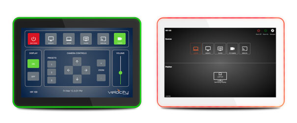 Su diseño complementa cualquier entorno AV, mientras que la iluminación Led que rodea el marco exterior del panel agrega énfasis a las funciones de control AV o visibilidad del estado de programación de la sala.