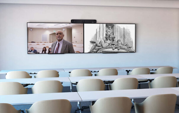 Esta tecnología perfecciona la experiencia del trabajo híbrido, conectando sin problemas tanto a las personas que se encuentran en la sala de reunión como a las que están en remoto.