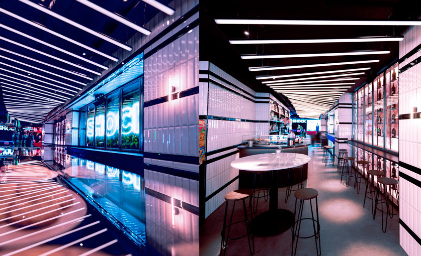 Por la noche, un DJ entretiene a la multitud que bailará bajo un techo de 25 metros de píxeles con impactantes diseños de iluminación. Un local camaleónico que cambia de ambiente en función de la hora.