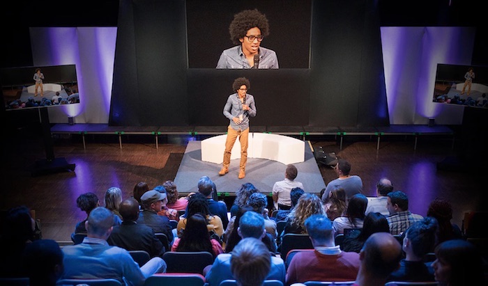 Para los participantes que están en la sala, la tecnología de primeros planos mediante gestos también puede detectar y reaccionar a los movimientos de la audiencia.